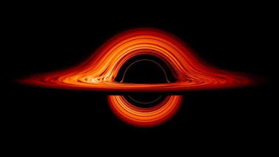 | A realistic depiction of a black hole up close, from the movie, Interstellar |